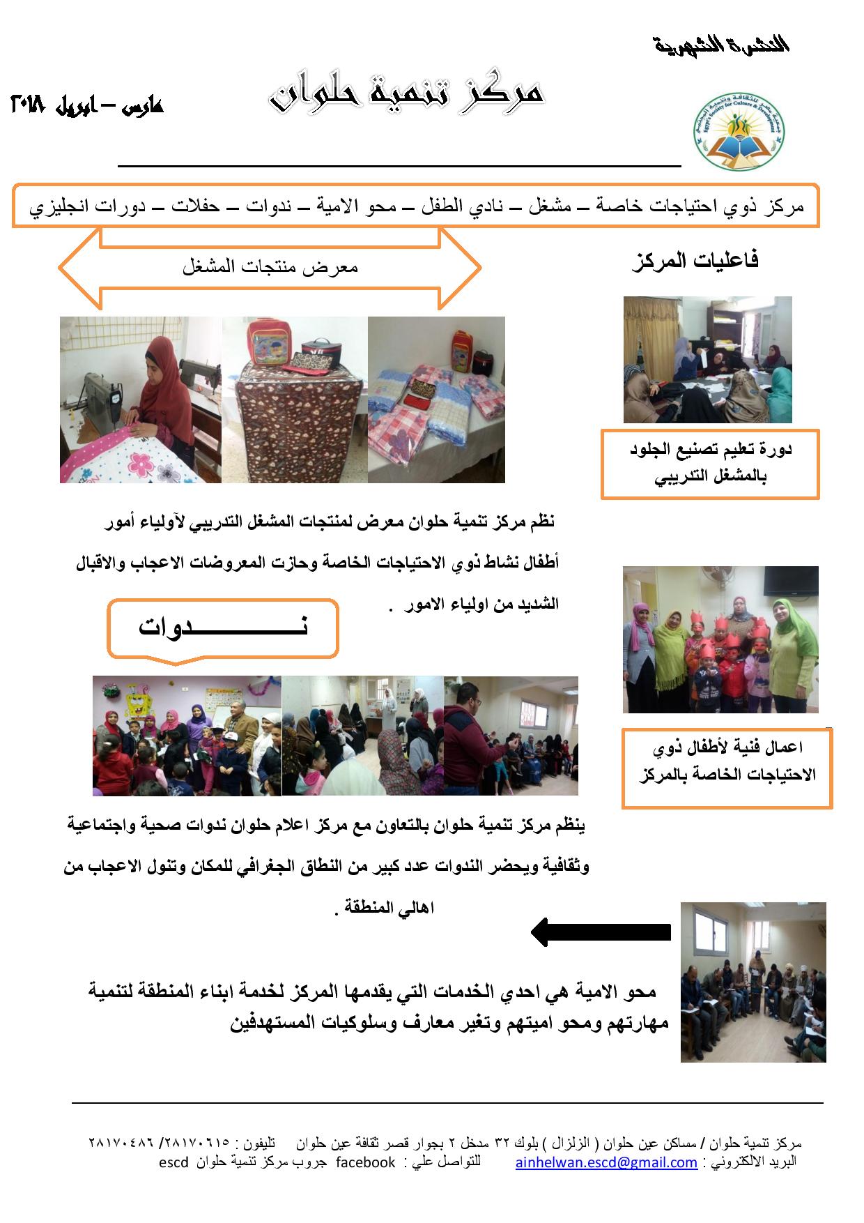 النشرة الشهرية لمركز تنمية حلوان - مارس