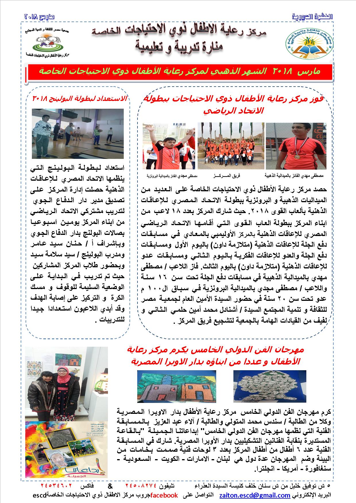 النشرة الشهرية لمركز رعاية الأطفال ذوى الاحتياجات الخاصة - مارس