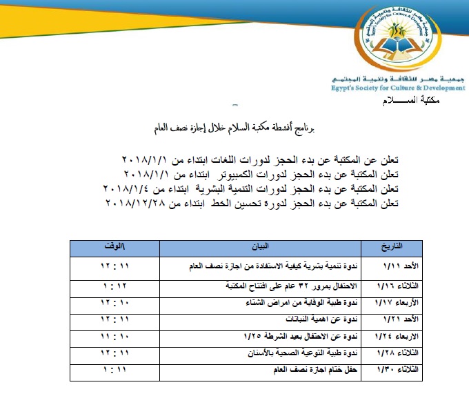 برنامج اجازة منتصف العام - مكتبة عرب المحمدى